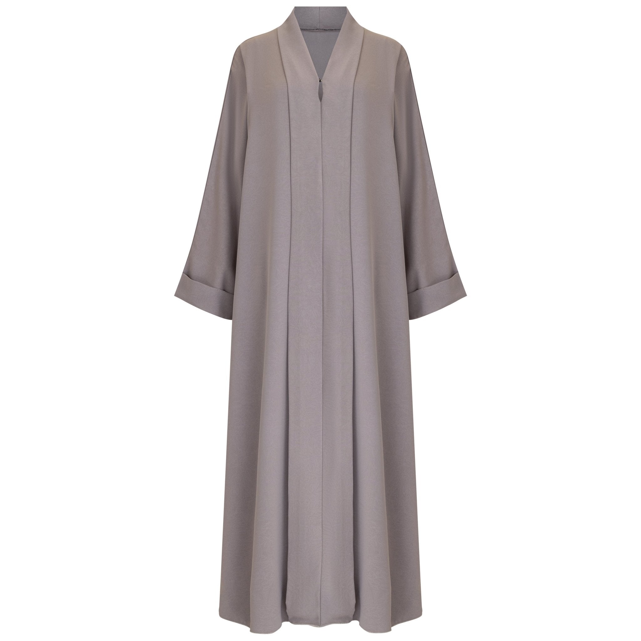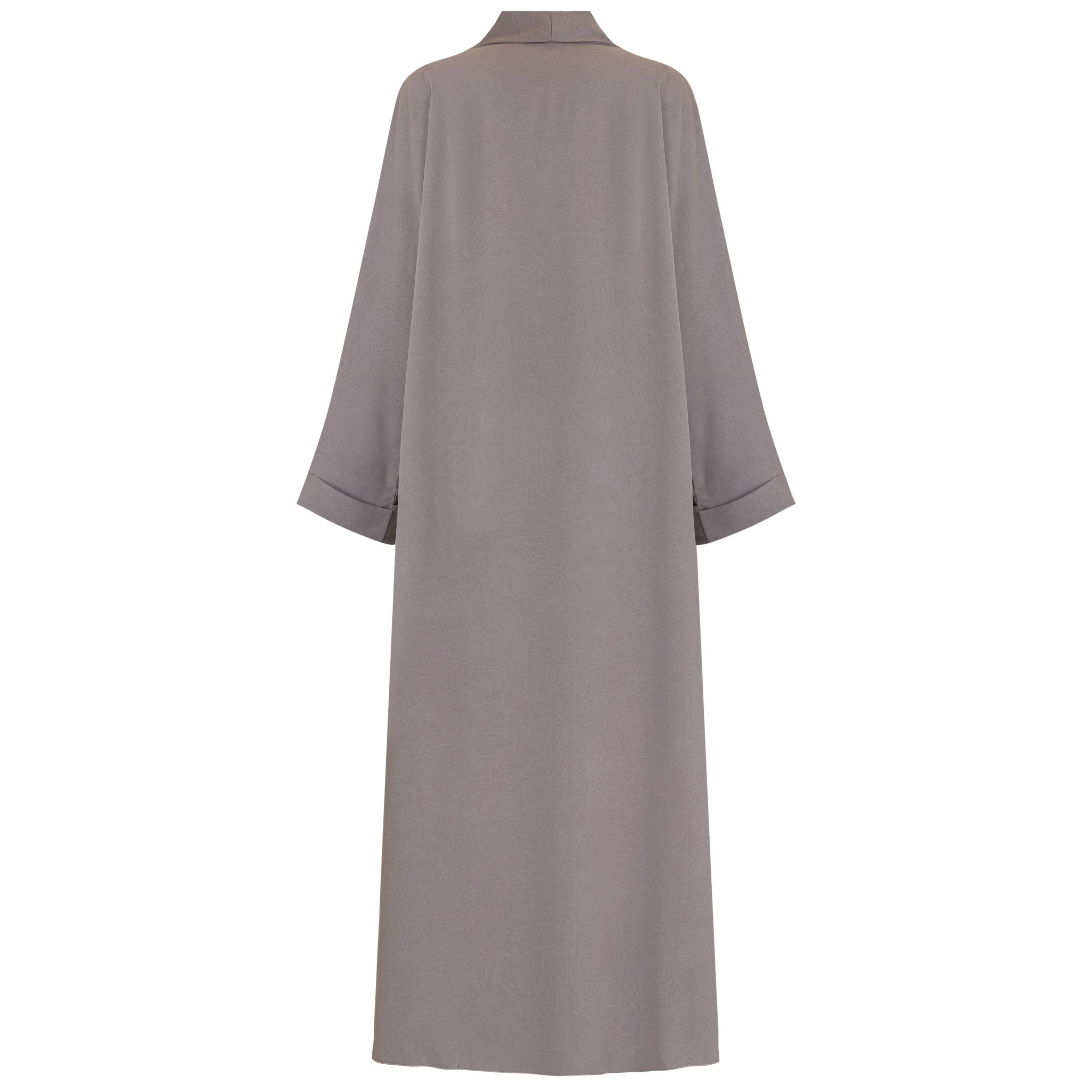 The Dusty Mauve Abaya, designed from premium lightweight crepe fabric for a sophisticated yet breathable fit. The fabric’s subtle texture and matte finish provide a refined look, making it perfect for both casual and formal wear.