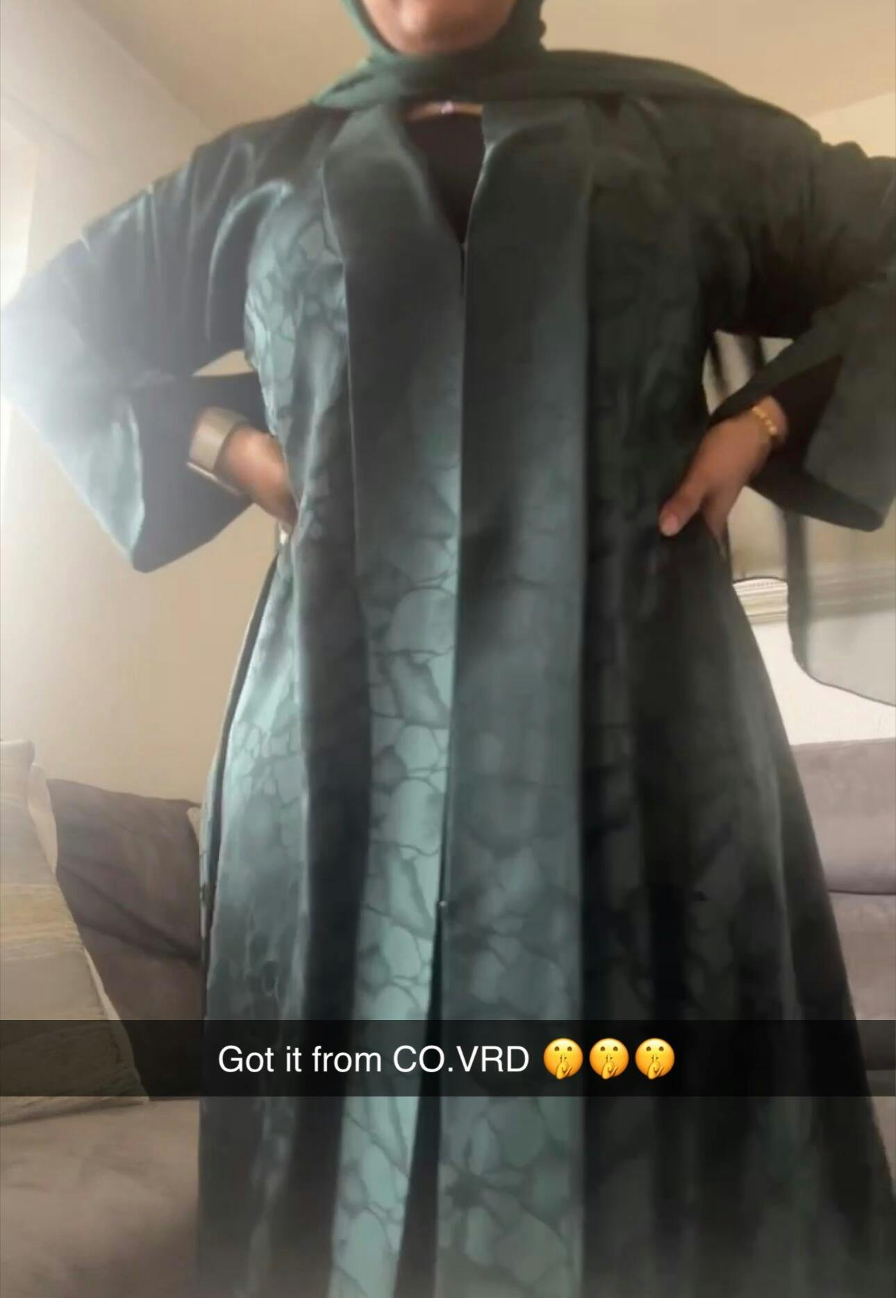 It’s an open abaya with buttons all the way down, so you can wear it fully closed or open over an inner dress, depending on where you’re going and how you prefer to style it.