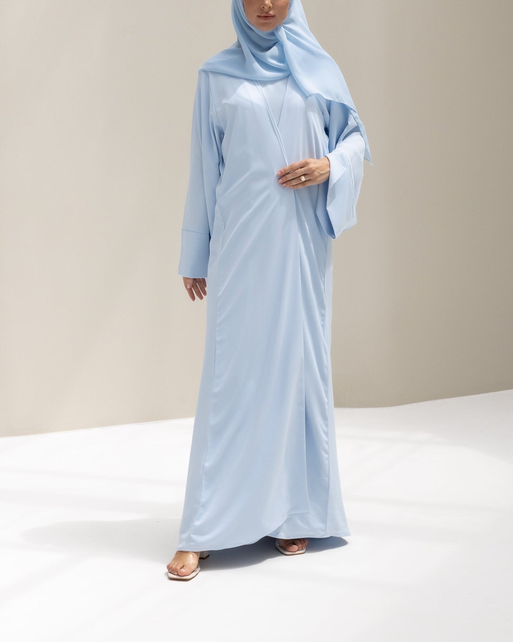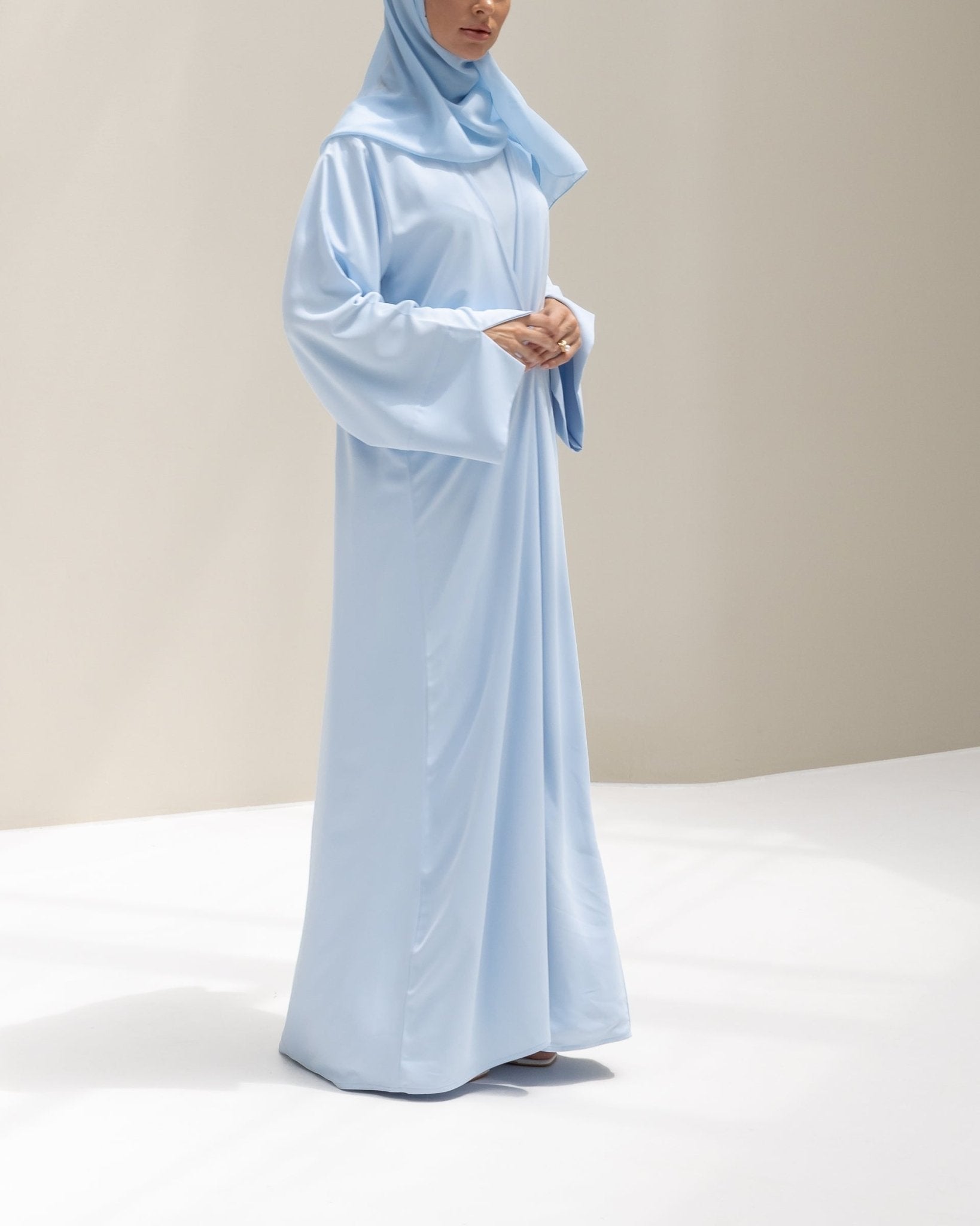 Our abayas are designed with a relaxed, flowy fit. For a neater silhouette, size down. For a more draped, airy look, stay true to size. Still unsure? Message us – we’re happy to help.