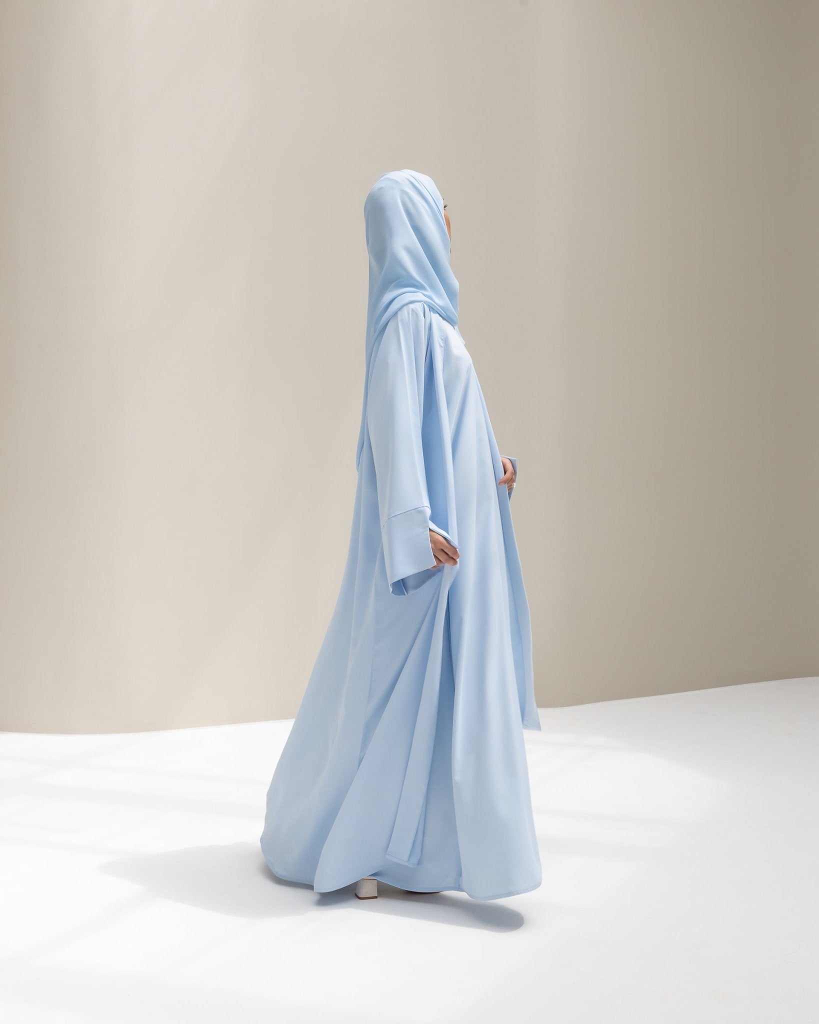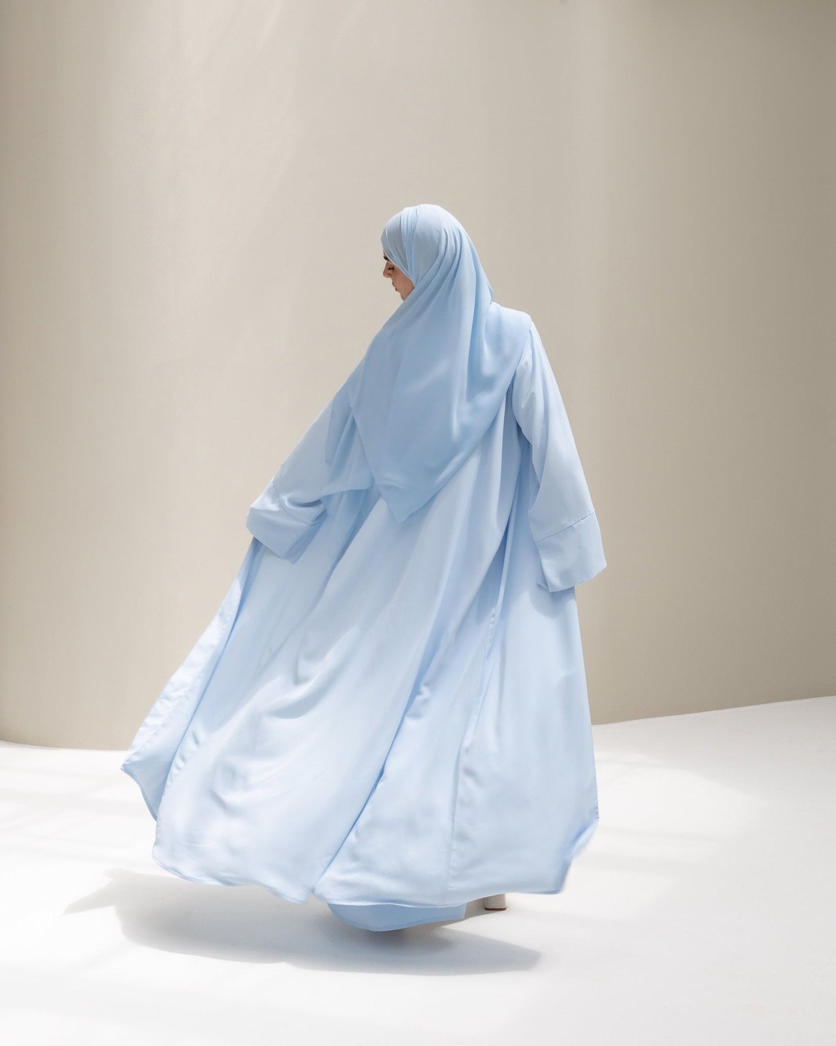 This is the Flare Abaya in motion, showing how the fabric falls and moves when worn.