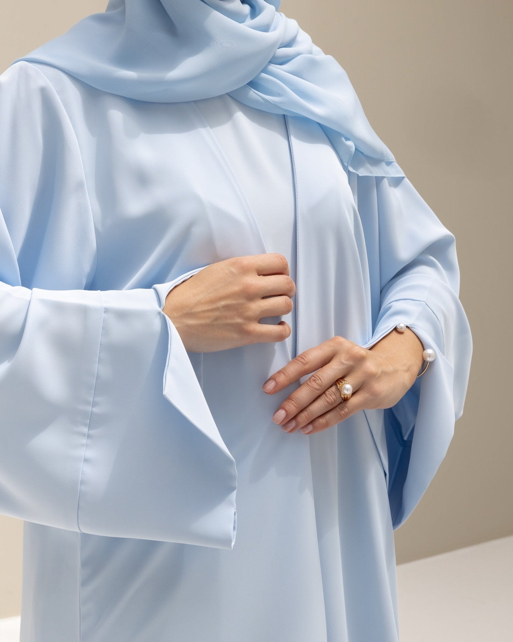 Finished with an extra-large hijab for added coverage and versatility, the Ramla Abaya is a timeless summer essential for everyday wear.
